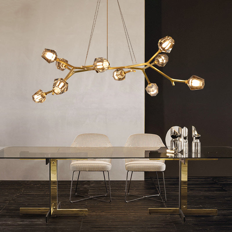 - Pendant, Antique Gold & Amber Crystal Glass Shades