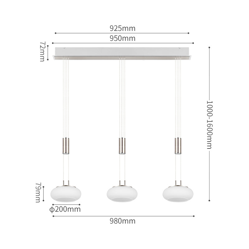Modern Style, 3Lts Glass Pendant, Length Adjustable