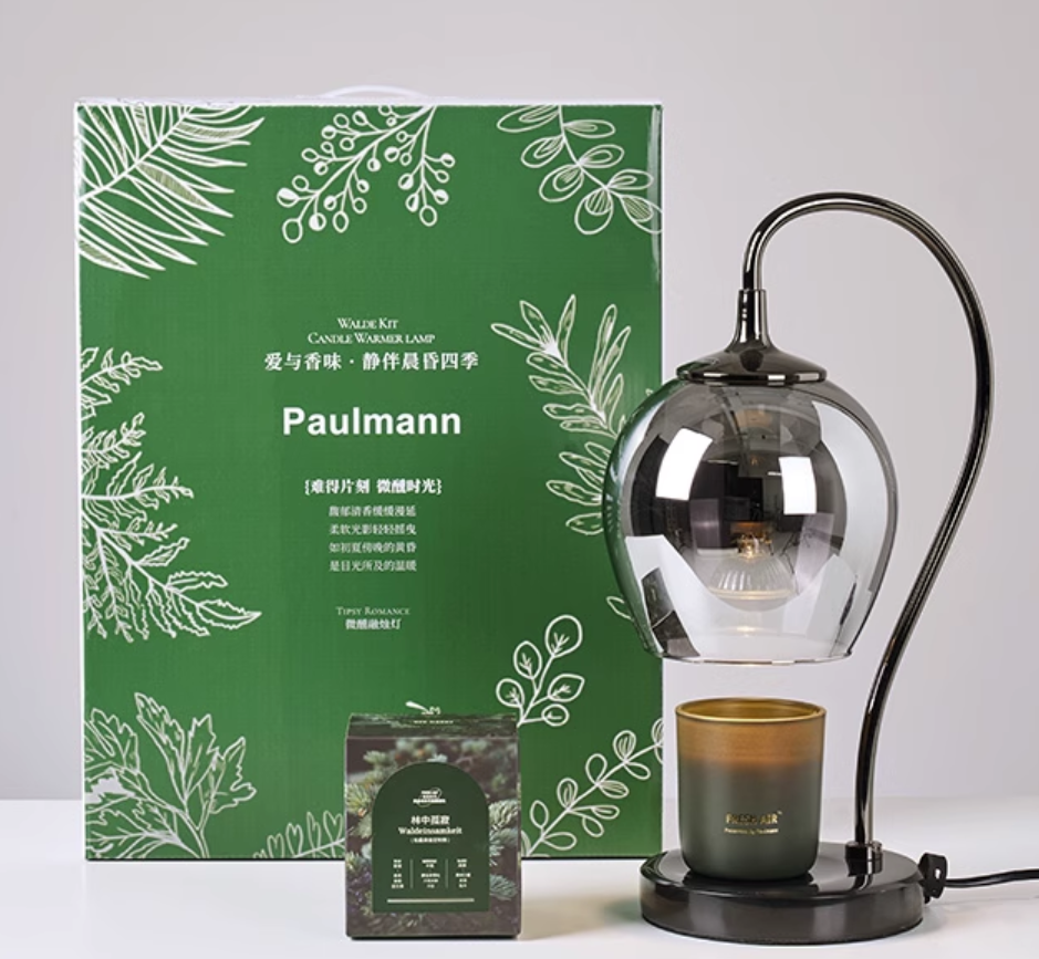 The set includes two scented candles: “Wald Einsamleit” with woody-green pine & grass notes, and “Wonderlust” with fresh citrus & lemongrass notes.