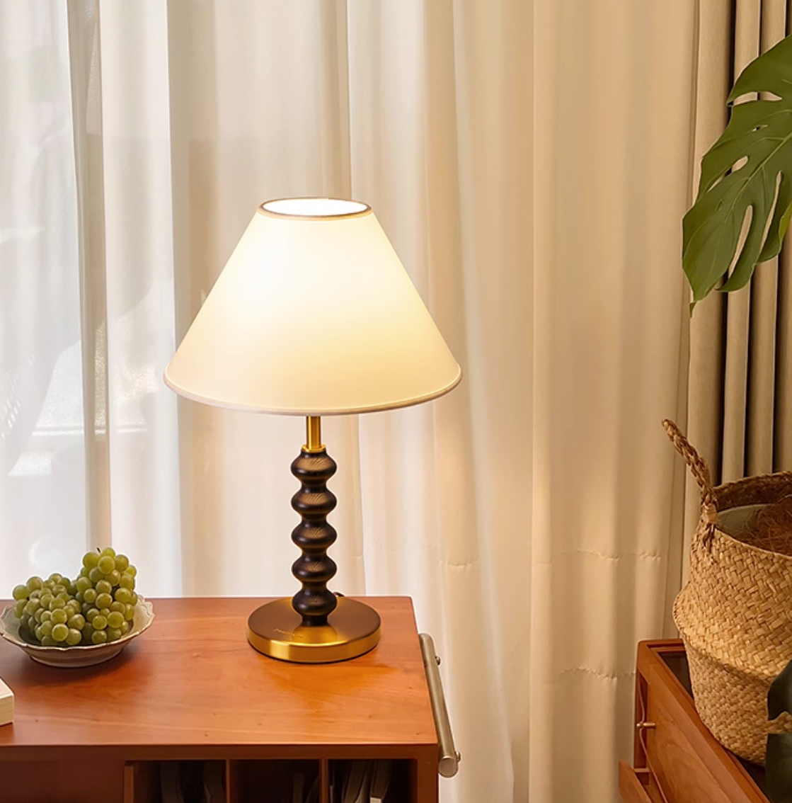 - Material: Brass, Wood & Fabric